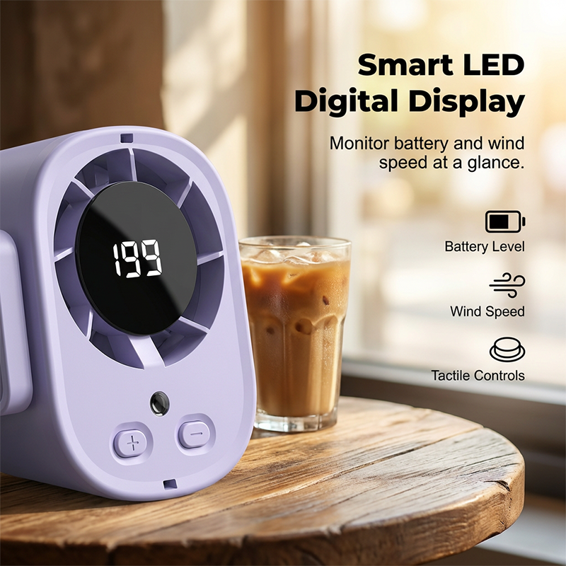 SMART LED DIGITAL DISPLAY - The intuitive black circular LED screen displays real-time battery life and current wind speed settings, ensuring you are always in control of your comfort.