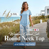 🔥Women's 2-Piece Set – Layered Asymmetrical Tunic Top & Printed Wide Leg Pants, Breathable Polyester ✨