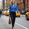VERSATILE SOLID COLORS - The timeless combination of a vibrant blue top and classic black trousers offers endless styling possibilities. Wear them together for a cohesive look or mix and match with other wardrobe staples.