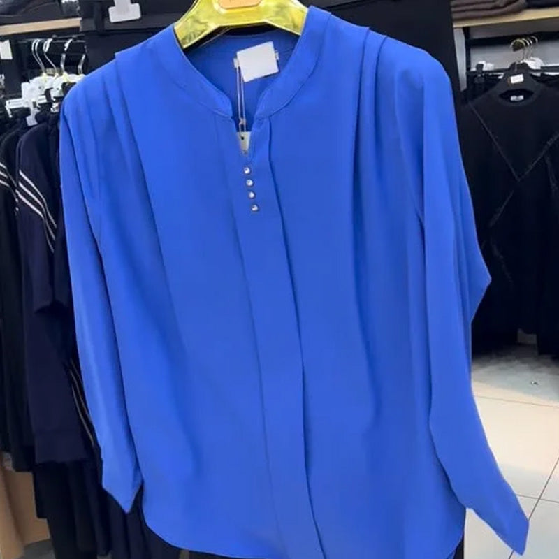 SUBTLE PLEAT DETAILING - Delicate pleats at the shoulders and down the front create a soft, textured effect. This thoughtful design element adds visual interest and dimension, enhancing the blouse's elegant and fluid character.